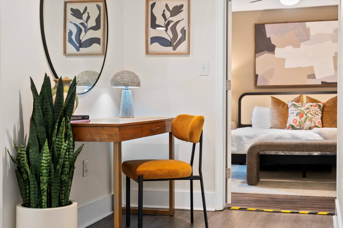 The Space Welcome to your cozy and stylish getaway in the heart of Park Circle! This charming two-bedroom cottage, beautifully designed by Rodrigo Reyes of Bravo TV's 'Southern Charm,' offers the perfect blend of comfort and convenience for your Lowcountry adventure. As you step inside, you'll be greeted by a bright and airy open-concept layout that seamlessly connects the living, dining, and kitchen areas. Relax in the colorful living room and stream your favorites on the Smart TV, or gather for memorable meals in the dining nook. The modern, fully equipped kitchen has all the essentials you need to make meal prep a breeze. When it's time to unwind, retreat to one of two comfortable bedrooms—one featuring a king-sized bed and the other a full bed, both equipped with their own Smart TVs. The home also includes a dedicated workspace with ultra-fast T-Mobile 5G WiFi, a washer/dryer for your convenience, and a private, fenced-in backyard perfect for relaxing. Guest Access You will have complete and private access to the entire home, including the fully fenced backyard and the private driveway with free parking for two vehicles. The Neighborhood Discover why Park Circle was recently voted the 'Best Neighborhood' by Charleston City Paper! This vibrant area is packed with fantastic restaurants, cafes, breweries, and bars just waiting to be explored. The cottage is just a few blocks from the massive Park Circle Park, home to the world's largest inclusive playground and situated right by the water. It's the perfect spot for a morning stroll or an afternoon of fun. Getting Around This home is the perfect base for exploring the best of the Charleston area. Downtown Charleston: A short 10-15 minute drive. Sullivans Beach: An easy 20-25 minute drive. Parking: Enjoy hassle-free parking with enough space for two vehicles right at the property. Important Information Beach Gear: To make your beach days effortless, we provide Turkish beach towels and cooler bags. Tommy Bahama beach backpack chairs are also available upon request. Pets: We are happy to welcome your furry friends! Please note that a pet fee applies. Permit Number: City of North Charleston Short Term Rental Permit 2026-0030